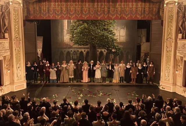 De manière générale, j’ai senti dans la réalisation un amour profond du chef d’œuvre de Rostand, et plus largement du 6ème art (soit celui du théâtre, oui, nous savons tous à quoi correspond le 7ème art, mais qui parmi nous est capable de citer correctement les précédents ? Bien peu de monde en vérité, et le chat flâneur que je suis ne s’en sort pas mieux). Mais revenons à notre Gascon. L’humour du film se veut profondément méta, puisqu’il cite et recrée à plusieurs reprises les scènes les plus célèbres de la pièce, en justifiant la source de leur inspiration à travers le quotidien d’Edmond (chose véridique au moins pour la création de la scène du balcon). Et le spectateur de sourire de bon cœur devant la convocation de ces passages qu’il connaît si bien tant la pièce est indélébilement ancrée dans le patrimoine culturel collectif francophone.
