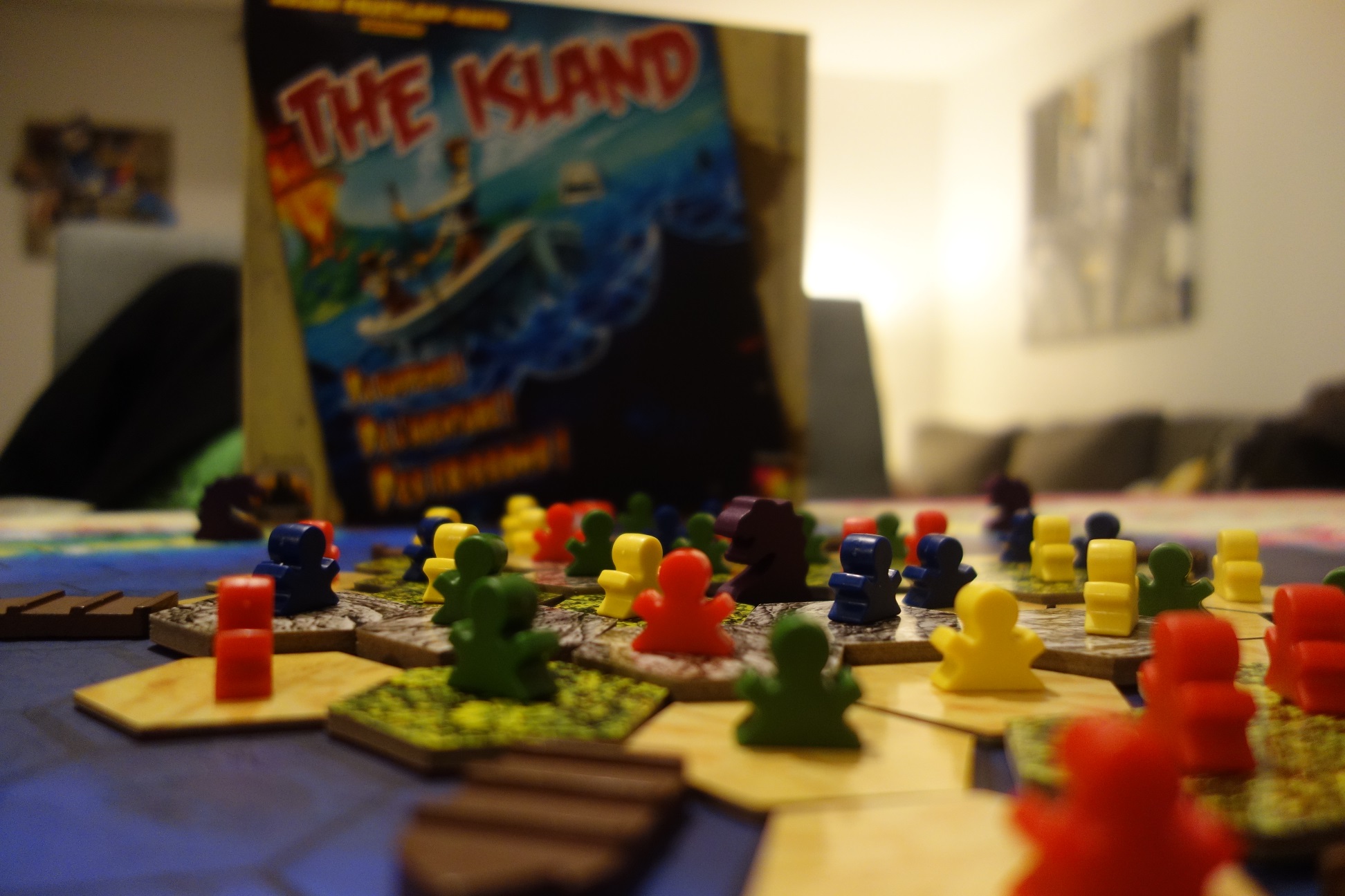 Avec un tel programme chargé en émotions, je préfère vous prévenir tout de suite : nous ne sommes pas face à un jeu de gestion et planification où chacun jouera gentiment dans son coin, et où les amateurs de contrôle peuvent se sentir comme un poisson dans l’eau. Au contraire, voilà un jeu au hasard et aux interactions entre joueurs prononcés, que l’on sort avant tout pour le pugilat ludique qu’il propose. Ici, tous les coups sont permis pour gagner, surtout ceux sous la ceinture. À ce titre, bien qu’il soit jouable à partir de 2 joueurs, ne nous voilons pas la face : c’est bel et bien à 4 qu’il prend tout son intérêt, puisque dans cette configuration, les interactions sont nécessairement présentes, alors qu’aucun emplacement ne sera libre en début de partie sur l’île.