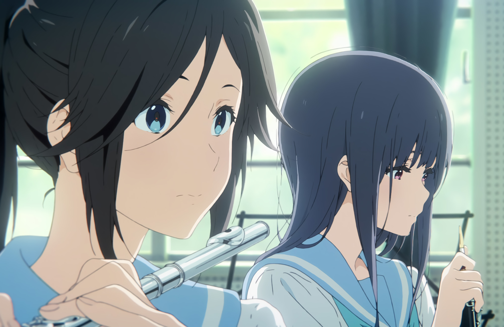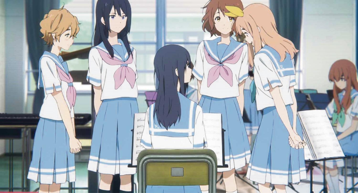 Voyons un peu ce qu’il nous raconte : Mizore, une lycéenne dans sa dernière année au caractère très effacé voue une admiration sans borne et exclusive envers son amie Nozomi, particulièrement extravertie et populaire. Les deux jeunes filles jouent dans l’orchestre de leur club de musique, respectivement du hautbois et de la flûte traversière, et seront amenées à partager un duo qui constitue le point d’orgue de la pièce musicale tirée d’un conte pour enfant intitulé Liz et l’Oiseau bleu. Celui-ci raconte l’amitié entre une jeune fille au grand cœur mais solitaire et un oiseau touché par sa situation. Nous allons donc suivre la relation entre les deux lycéennes mise en parallèle avec le conte. Et c’est à peu près tout.