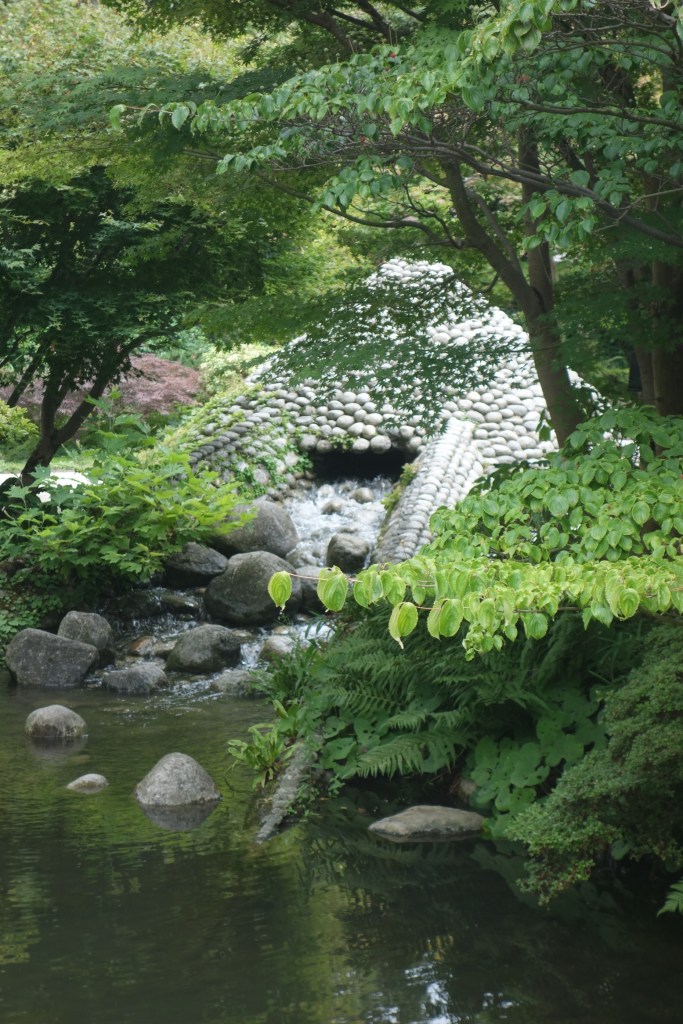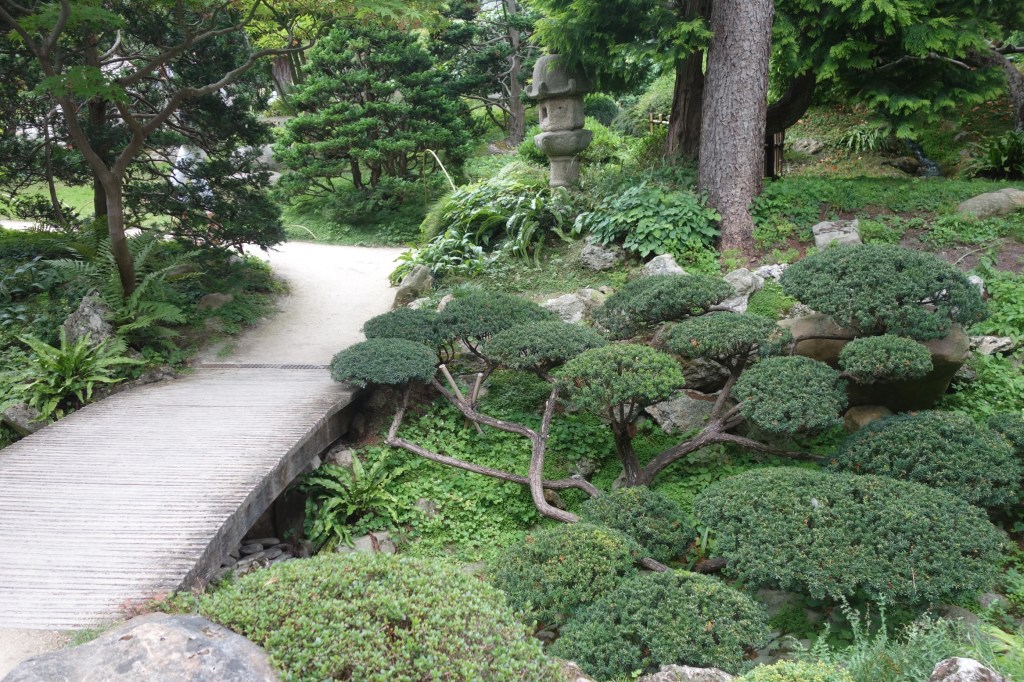 Tout en dénivelés, le long de différents plans d’eau, le dépaysement s’y fait total. Que ce soit par les essences d’arbre, les ponts et autres lanternes en pierre que l’on peut y trouver, mis en perspective avec l’élément aquatique. Mention spéciale pour le tourbillon d’eau formant une spirale, motif que l’on retrouve par ailleurs parmi les différentes marques géométriques présentes à nos pieds le long du chemin, et qui ne manquent pas de nous intriguer. Ce n’est clairement pas pour rien que la zone nippone s’avère la plus célèbre du jardin : non contente d’être la plus exotique, elle est également la plus marquante. Elle invite clairement à la contemplation, afin de profiter des différents panoramas qu’elle propose.