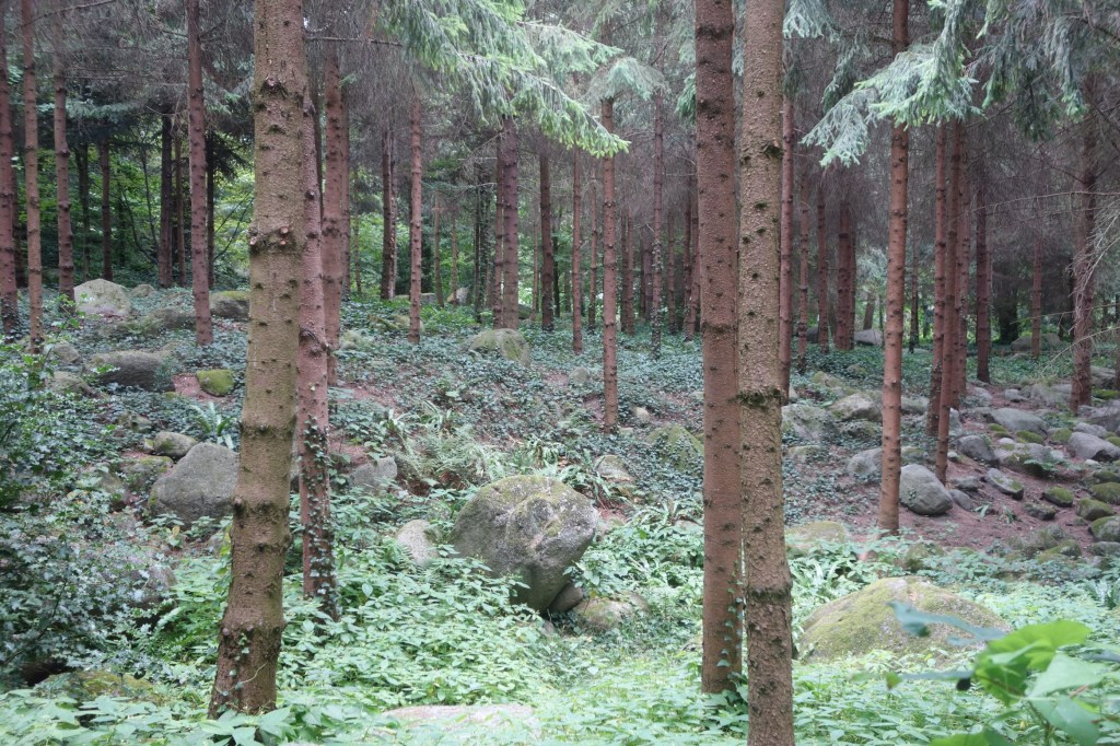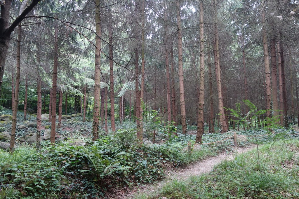 En revanche, en traversant la forêt vosgienne, on s’imagine si facilement loin de la ville, pourtant si proche de nous, à quelques dizaines de mètres derrière le mur d’enceinte. Inspirée des paysages montagneux de l’enfance de M. Kahn, ses chemins étroits entre les arbres et les nombreux rochers qui la parsèment m’ont également évoqué la forêt de Fontainebleau.