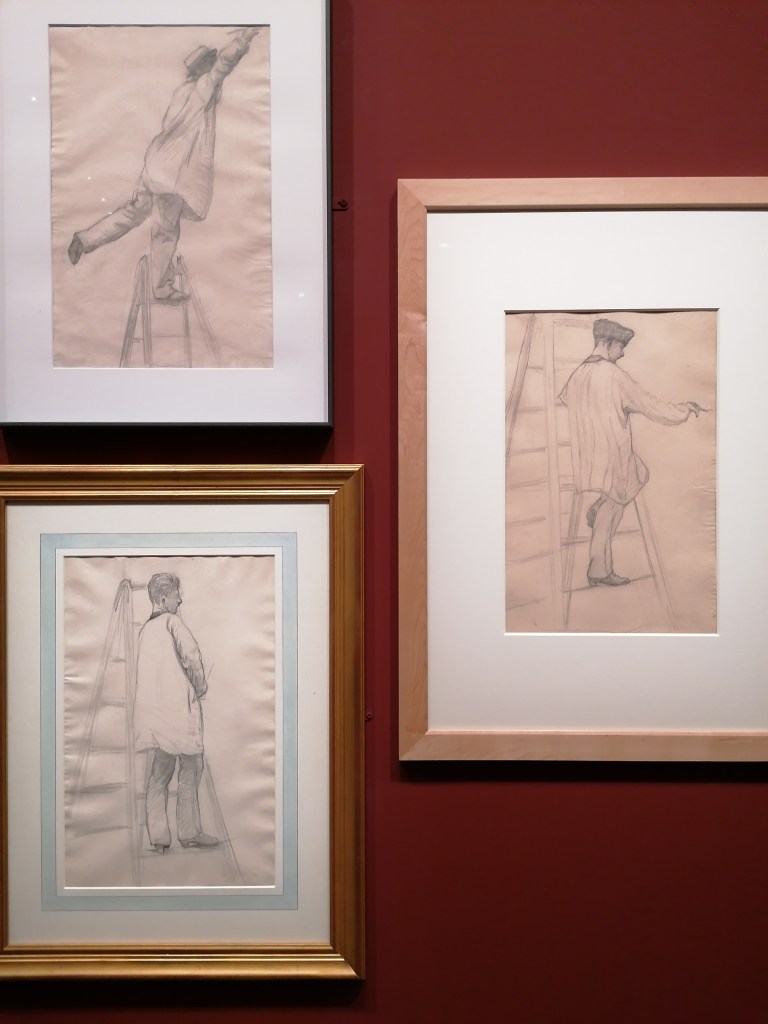Son chef-d’œuvre, Les Raboteurs de parquet (1875), figure bien évidemment dans l’exposition permanente du musée. Cependant, voir cette toile si moderne entourée de ses esquisses et croquis préparatoires, lui donne encore plus de relief. Depuis l’enfance, ce tableau me fascine, que ce soit par l’expressivité des corps, le sujet original ou encore la lumière subtile se reflétant sur le parquet. Il était amusant de découvrir que, si Caillebotte n’était pas lui-même un artiste impressionniste, ces tableaux préparatoires étaient beaucoup plus proches de ce mouvement pictural.